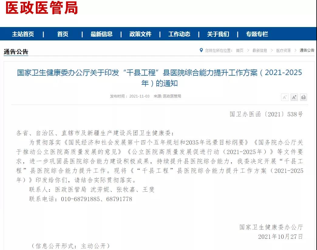 《“千縣工程”縣醫院綜合能力提升工作方案(2021-2025年)》