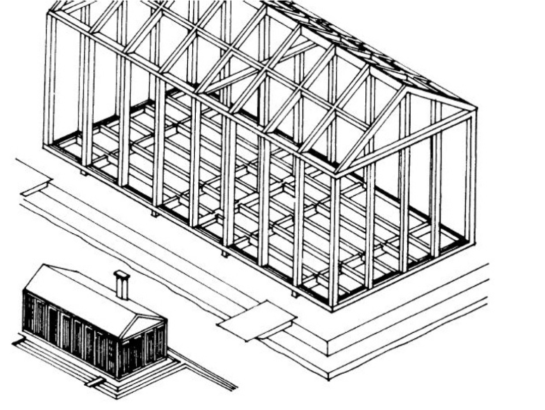 1830年,為實現海外殖民地定居點的快速建設,英國木匠曼寧(John Manning)借助造船業基礎,發明了在英國制造并由輪船運往世界各地建造簡易的木框架房屋(Manning Portable Cottage)。
