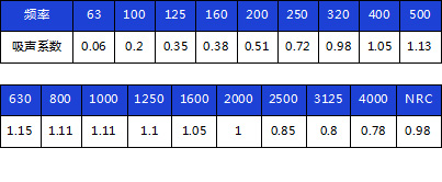 吸聲頻帶寬、低頻吸聲效果更佳;在100~5000HZ內平均吸聲系數(shù)0.84以上;降噪系數(shù)NRC達到0.98。