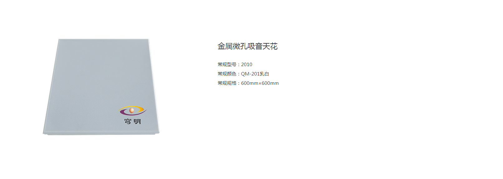 鋁制微孔吸音天花采用的基材為1001H24、3003H24國家標準鋁材熱扎優質鋁合金板材,材質達到GB3880標準,厚度由0.7mm至1.0mm為常規使用厚度,誤差不超過20um,涂層采用進口靜電粉末噴涂,正面涂層厚度不小于60μm,正表面為乳白色,采用一次沖壓成型,不采用間歇式翻折工藝加工,并且面板有足夠的整平及應力釋放生產工藝,板折邊高度為22mm,。