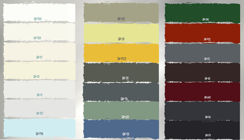 :鋼板基材采用0.5-1.0mm熱熔鍍鋅鋼板,誤差不超過20um,再將該鋼板進行專業的烤漆制程,形成彩涂板材。